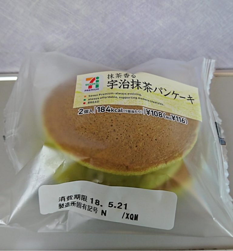 最後は「宇治抹茶もちっとパンケーキ」。2個入りのパンケーキに抹茶クリームともちもち生地が特徴。Xの「#コンビニスイーツ」タグで「抹茶パンケーキやばい!」って声が多かったから期待大!